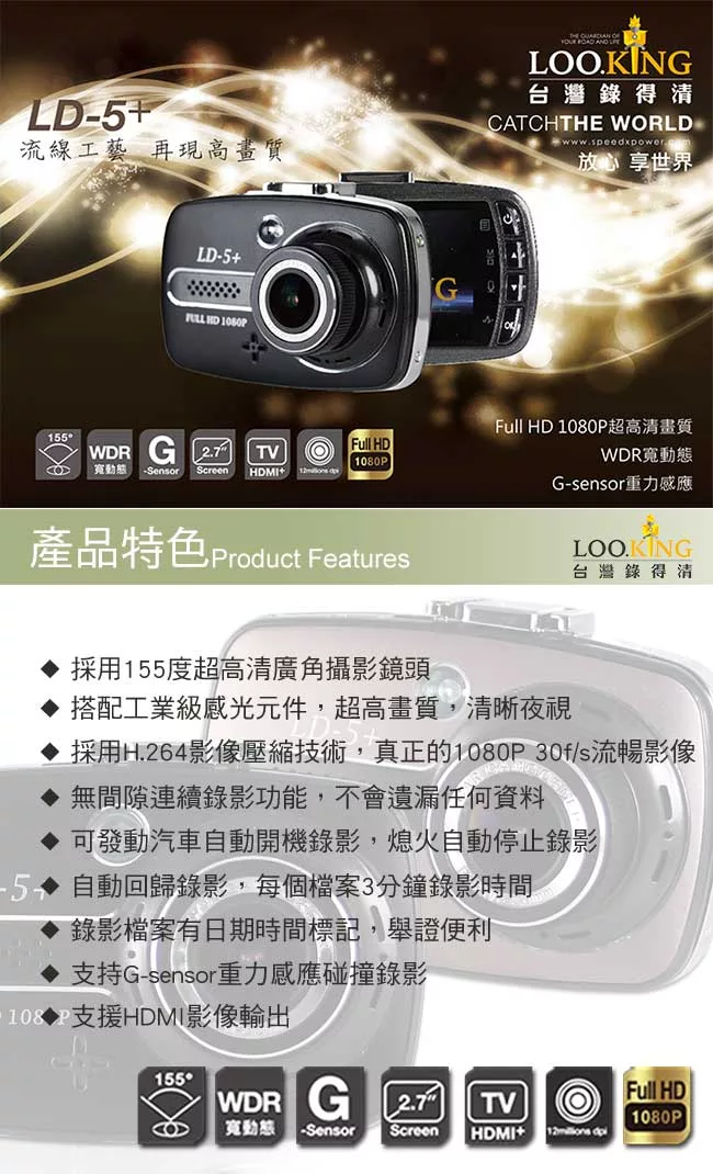 錄得清 LooKing LD5+ Full HD 1080P 全高清影像行車紀錄器 (送32GC10記憶卡+全省基本免費安裝)紫色