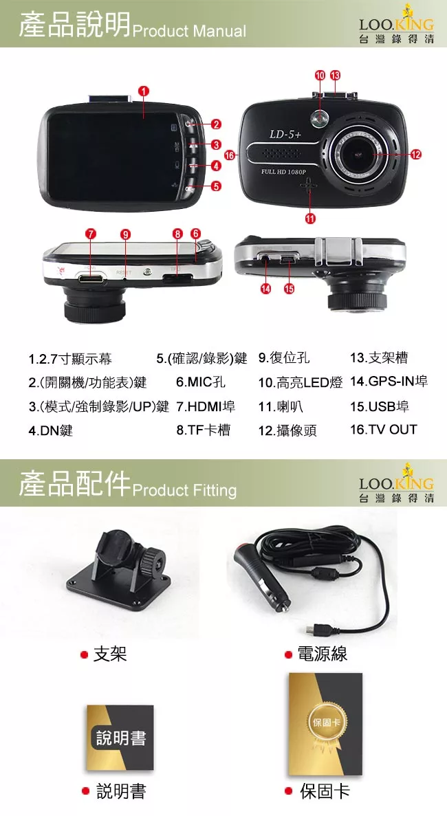錄得清 LooKing LD5+ Full HD 1080P 全高清影像行車紀錄器 (送32GC10記憶卡+全省基本免費安裝)紫色![]()
