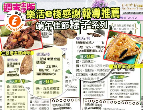 【樂活e棧】 三低招牌素食素滷粽+素食養生粽子-媒體爭相報導:
